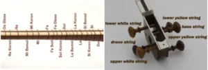 A traditional Persian Tar features six strings arranged in three double courses, typically made from steel and brass. This combination allows for a wide tonal range—steel strings bring clarity and brightness, while brass adds warmth and depth.